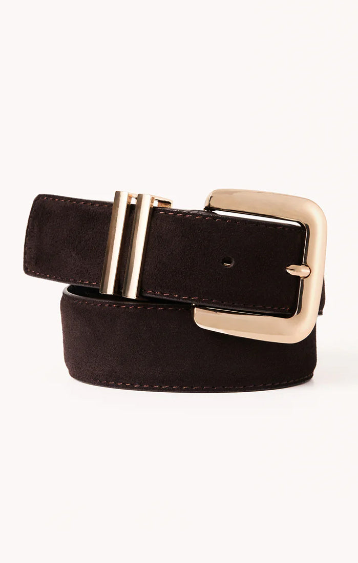 Billini Delta Belt ~ Dark Cacao Suede Leather Gold