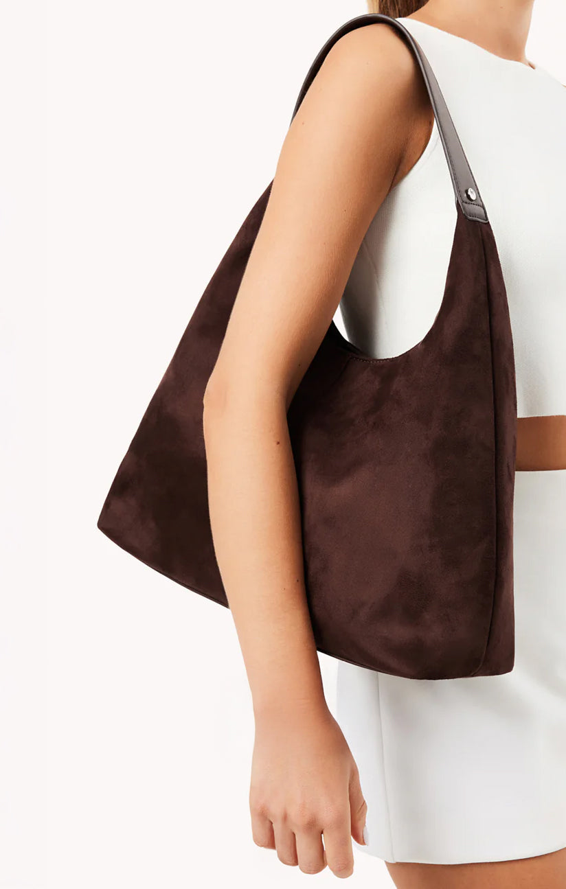 Soft structure, big impact. The Tammy Handbag by Billini in chocolate suede is your go-to with a roomy interior and chic slouch—perfect for errands, dinner, or even your coffee run.