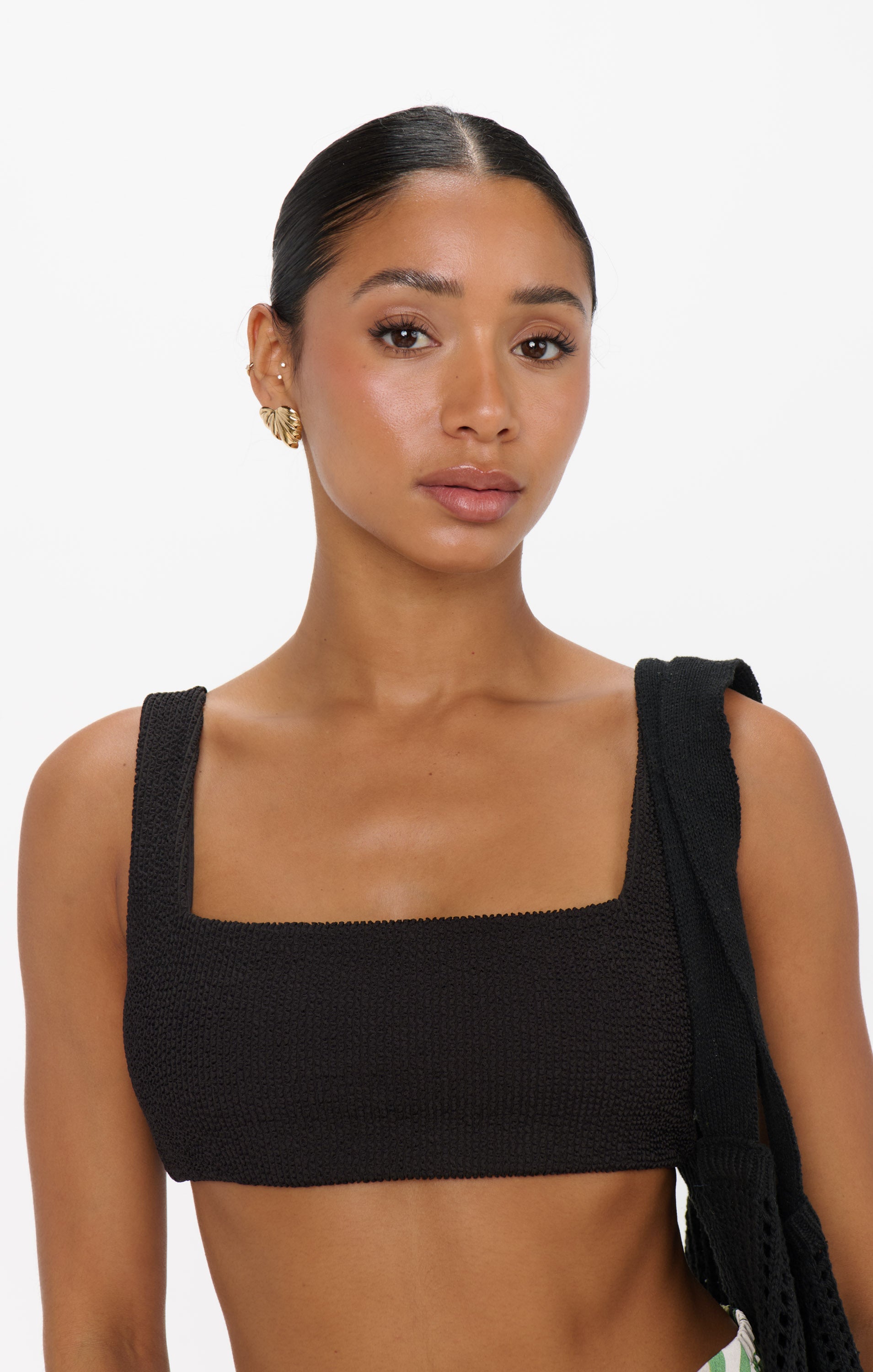 The Sunset Palm Earrings bring vacation energy to any look with their sleek gold finish and palm-inspired design.